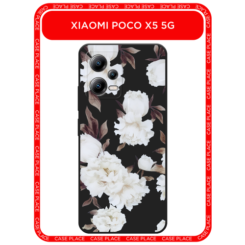 Черный матовый чехол на Xiaomi Poco X5 5G / Сяоми Поко X5 5G с принтом Цветочная хрупкость 2
