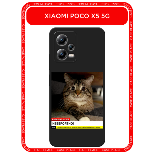 Черный матовый чехол на Xiaomi Poco X5 5G / Сяоми Поко X5 5G с принтом Невероятный кот