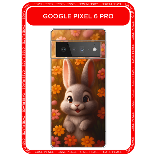 Чехол на Google Pixel 6 Pro / Гугл Пиксель 6 Pro с принтом Серый зайка на лугу