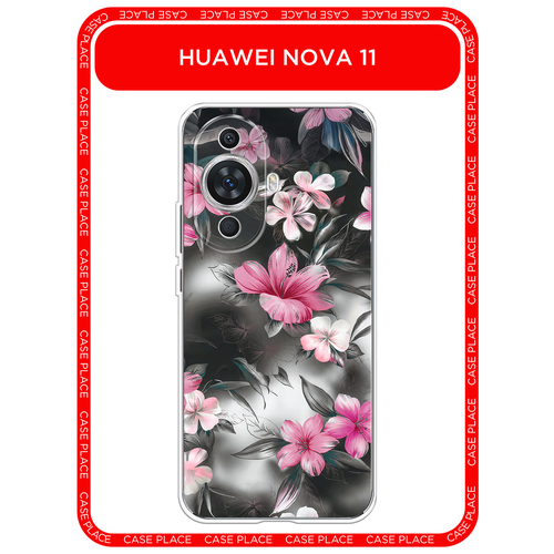 Чехол на Huawei NOVA 11/12S / Хуавей Нова 11/12S с принтом Цветы на сером