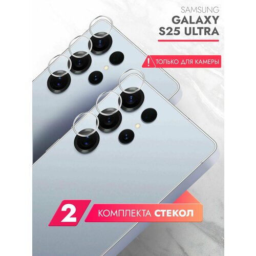 Защитное стекло на Камеру для Samsung Galaxy S25 Ultra , 2 штуки, (гибридное: пленка+стекловолокно), прозрачное силиконовая клеевая основа тонкое Hybrid Glass, Brozo