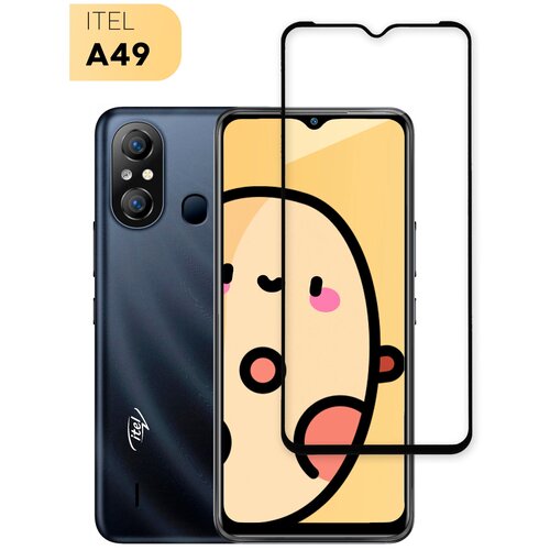 Защитное стекло для Itel A49 (Ител А49) закалённое, не мешает работе датчиков и камере, прозрачное с черной рамкой