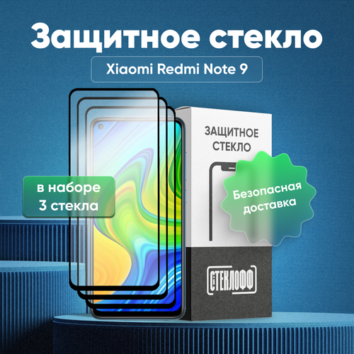 Набор защитных стекол для Xiaomi Redmi Note 9 c полным покрытием, серия Стеклофф Base, 3 шт