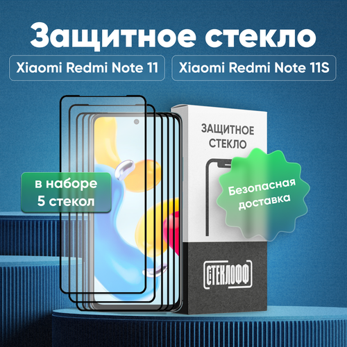 Набор защитных стекол для Xiaomi Redmi Note 11 и Xiaomi Redmi Note 11S c полным покрытием, серия Стеклофф Base, 5 шт