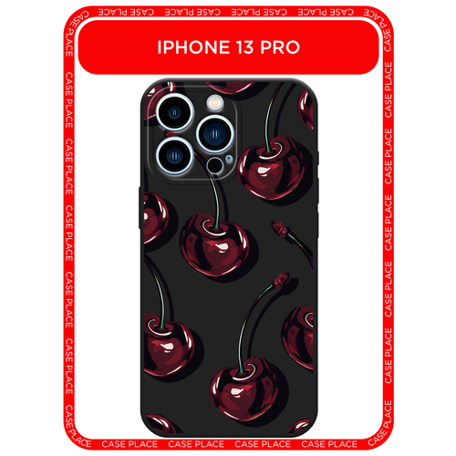 Черный матовый чехол на Apple iPhone 13 Pro / Айфон 13 Про с принтом Сочные черешни