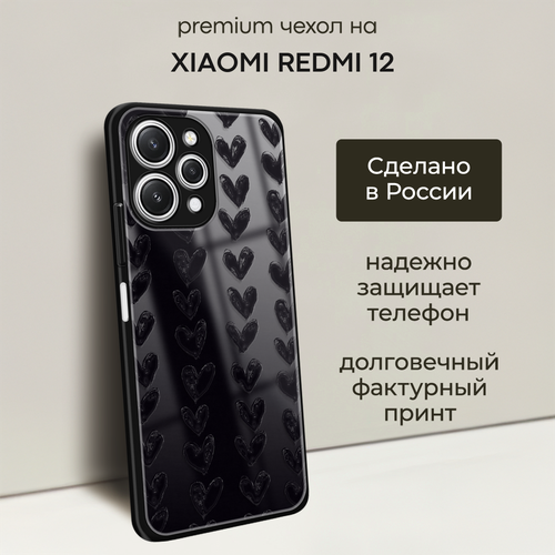 Чехол на Xiaomi Redmi 12 / Сяоми Редми 12 с объемным принтом "Сердце черное"