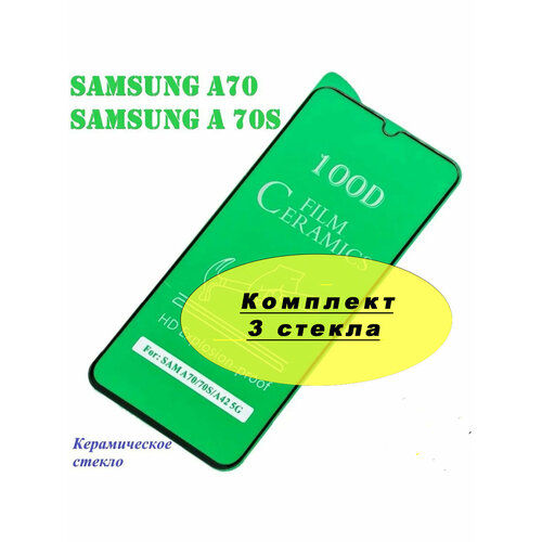 Керамическое гибкое стекло для Samsung Galaxy A70 / A70s / A42 5G полный клей ( черная рамка) 3 стекла