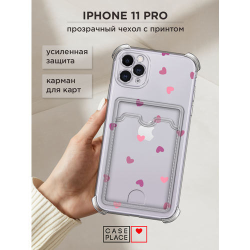 Чехол на Apple iPhone 11 Pro (Айфон 11 Про) с картой и принтом Фиолетовые и розовые сердечки