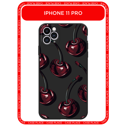 Черный матовый чехол на Apple iPhone 11 Pro / Айфон 11 Про с принтом Сочные черешни