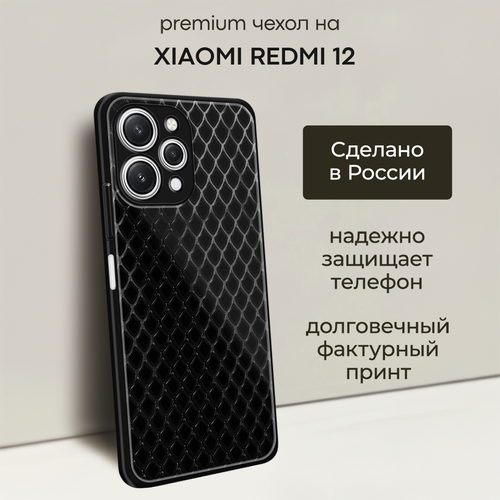 Чехол на Xiaomi Redmi 12 / Сяоми Редми 12 с объемным принтом "Черная чешуя"