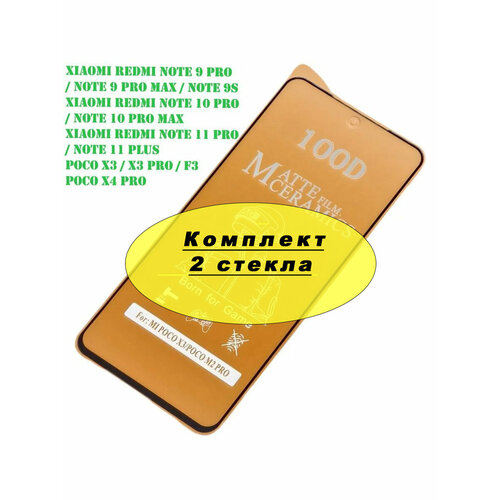 Керамическое матовое гибкое стекло для Xiaomi Redmi Note 9s / Note 9 Pro / Poco X3 / X3 Pro полный клей ( черная рамка) 2 стекла