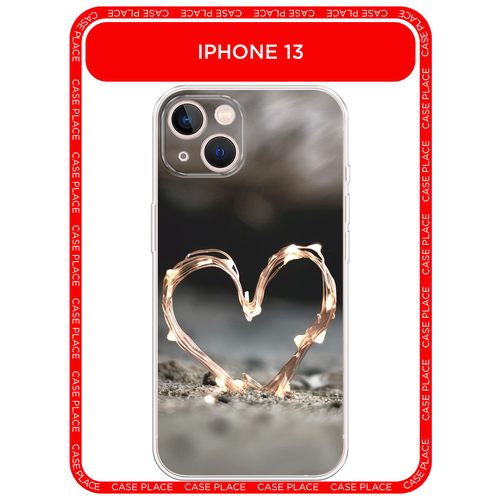 Чехол на Apple iPhone 13 / Айфон 13 с принтом Сердечко из гирлянды