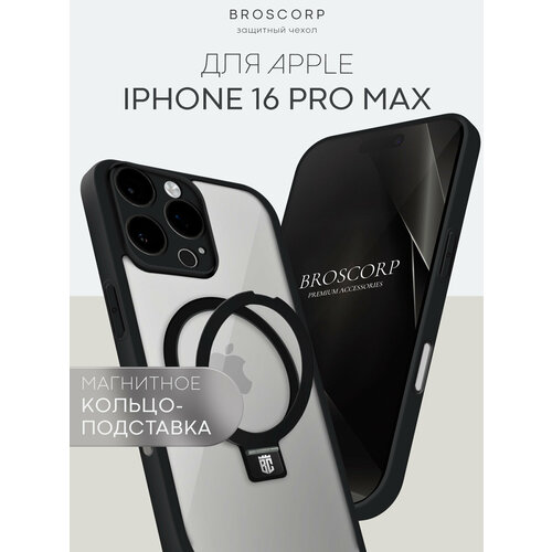 Пластиковый чехол на Apple iPhone 16 Pro Max (Айфон 16 Про Макс), с магнитным кольцом, прозрачная глянцевая панель