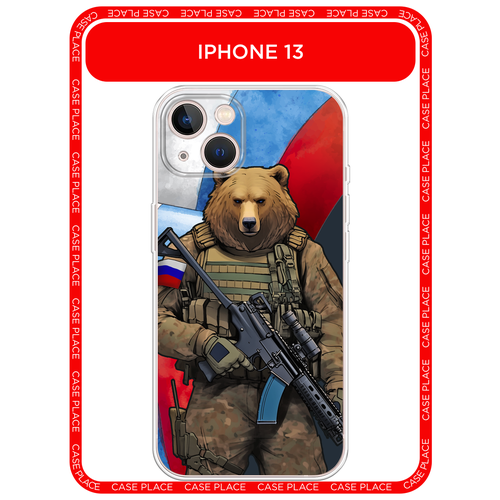 Силиконовый чехол на Apple iPhone 13 / Айфон 13 с принтом Медведь-вояка