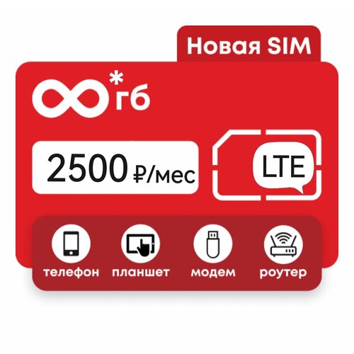 Сим-карта безлимитный интернет 1000 ГБ за 2500 в месяц для модемов и роутеров