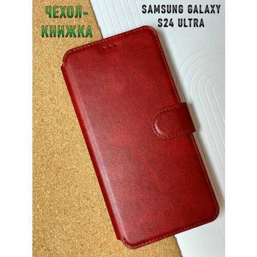 Чехол книжка для Samsung Galaxy S24 Ultra кожаный с магнитной застежкой, Самсунг Галакси ЭС 24 Ультра с хлястиком , с функцией подставки