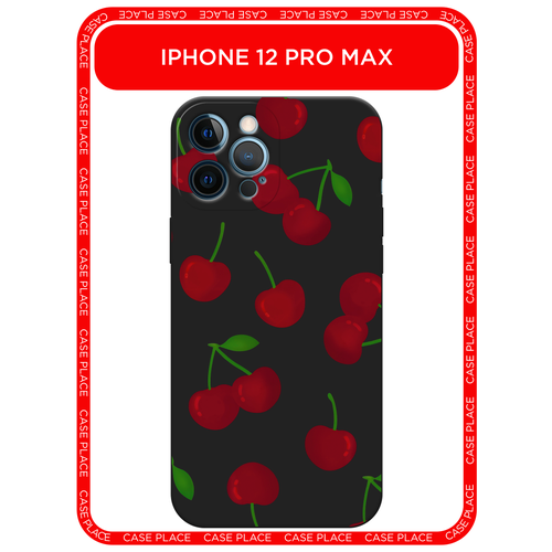Черный матовый чехол на Apple iPhone 12 Pro Max / Айфон 12 Про Макс с принтом Вишни паттерн 2