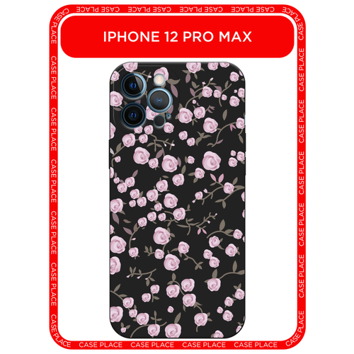 Черный матовый чехол на Apple iPhone 12 Pro Max / Айфон 12 Про Макс с принтом Нежно-розовые розы 2