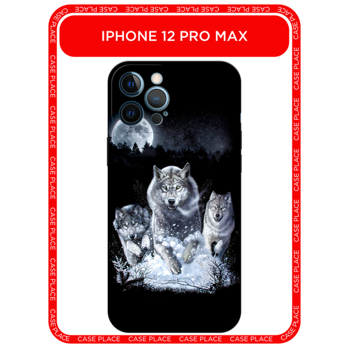 Черный матовый чехол на Apple iPhone 12 Pro Max / Айфон 12 Про Макс с принтом Стая волков под луной