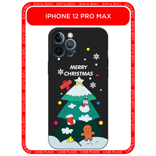 Черный матовый чехол на Apple iPhone 12 Pro Max / Айфон 12 Про Макс с принтом Christmas tree white