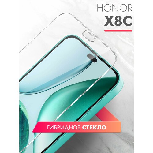 Защитное стекло для Honor X8c на Экран, (гибридное: пленка+стекловолокно), прозрачное силиконовая клеевая основа тонкое Hybrid Glass, Brozo