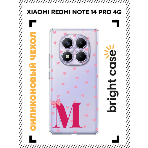 Чехол на Xiaomi Redmi Note 14 Pro 4G / Сяоми редми Нот 14 Про 4G с принтом Буква M сердечки, прозрачный