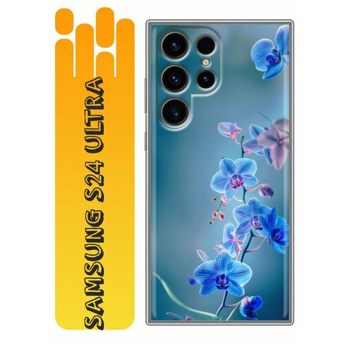 Чехол для Samsung Galaxy S24 Ultra с принтом Голубые цветы (Самсунг Галакси С24 Ультра)