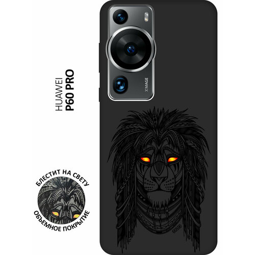 Матовый Soft Touch силиконовый чехол на Huawei P60 Pro, Хуавей П60 Про с 3D принтом "Grand Leo" черный