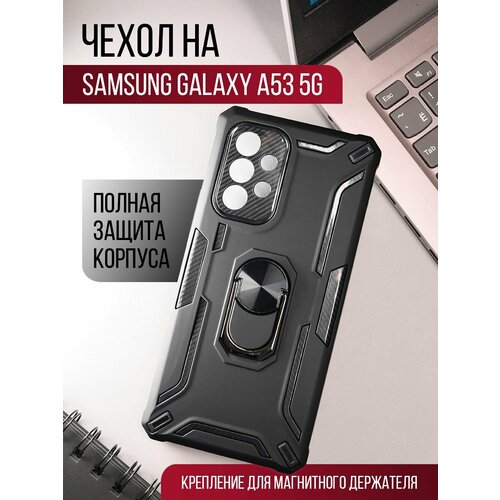 Чехол противоударный на Samsung Galaxy A53 5G защитный бампер на Самсунг Галакси A53 5G с кольцом-подставкой Черный
