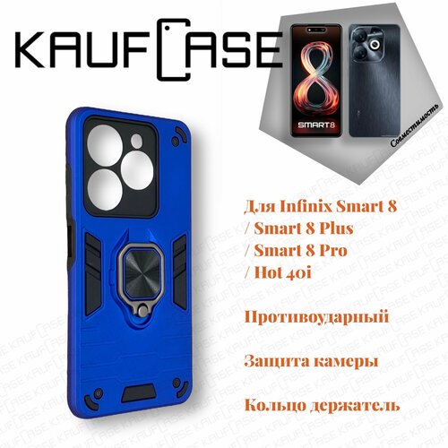 Противоударный чехол на Infinix Smart 8/ 8 Plus/ 8 Pro/ 8 HD (X6525/6526) (6.6"),. Кольцо-держатель и магнитное крепление, яркие пластиковые защитные вставки