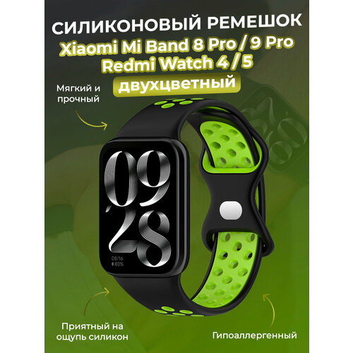 Двухцветный силиконовый ремешок для Xiaomi Mi Band 8 Pro/9 Pro и Redmi Watch 4/5, черно-лимонный
