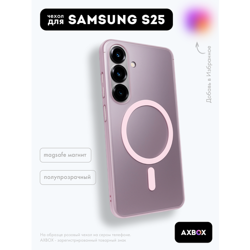 Чехол Magsafe на Samsung Galaxy S25, полупрозрачный, розовый, матовый