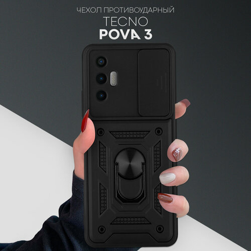 Противоударный чехол Картофан на Tecno Pova 3 (Техно Пова 3) c кольцом-держателем