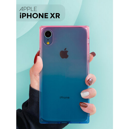 Чехол на Apple iPhone XR (Айфон ХР), с квадратными гранями, прозрачный розово-синий, Картофан