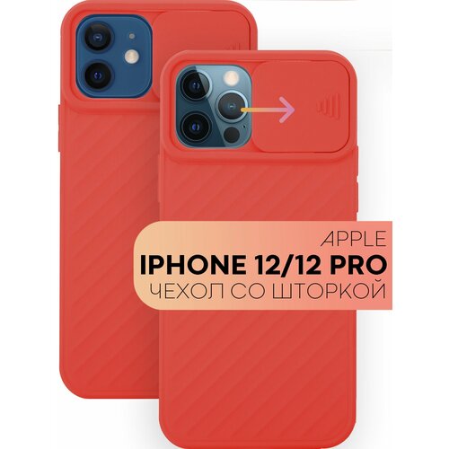 Силиконовый чехол на Apple iPhone 12, iPhone 12 Pro (Айфон 12, Айфон 12 Про) защитная шторка для камеры и матовым покрытием soft-touch, красный