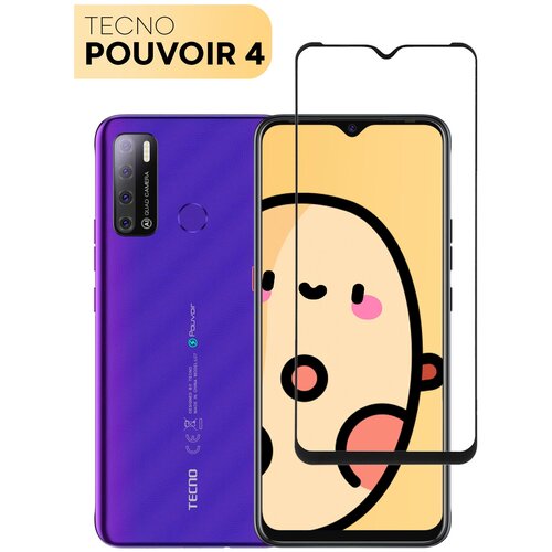 Защитное стекло для Tecno Pouvoir 4 (стекло Техно Повер 4, Текно Пауэр 4) прозрачное стекло с рамкой, защита от царапин, легко приклеить