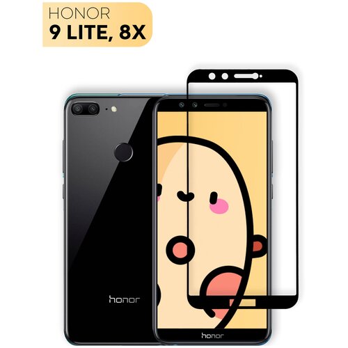 Защитное стекло для Honor 8X, Honor 9 Lite (Хонор 8 Икс, Хонор 9 Икс Лайт) прозрачное стекло с рамкой, леко наклеить
