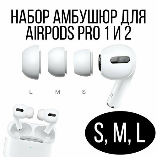 Амбушюры для наушников Apple Airpods Pro 1,2 - 3 пары 3 размеров S, M, L (6 штук)