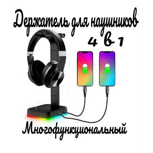 Подставка для наушников , держатель для наушников с RGB подсветкой и двумя портами
