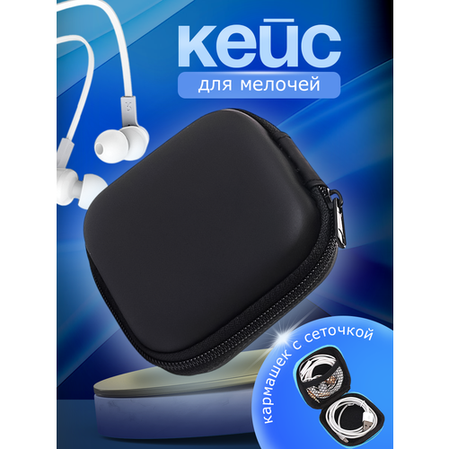 Чехол для наушников, органайзер для хранения проводов кейс черный влагозащищённый