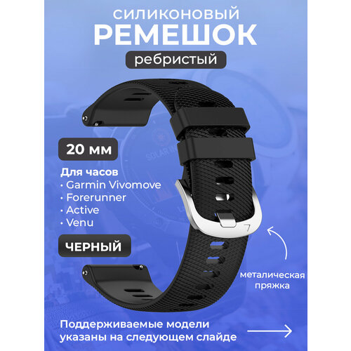 Силиконовый ремешок для Garmin Vivomove / Forerunner / Active / Venu, 20 мм, ребристый, cеребристая пряжка