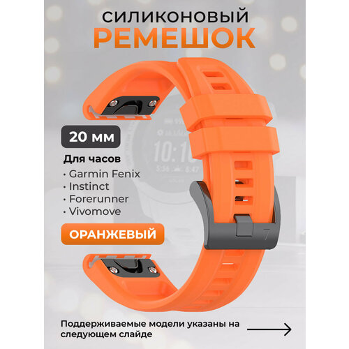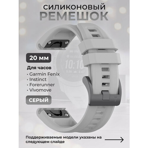 Силиконовый ремешок для Garmin Fenix / Instinct / Forerunner / Vivomove, 20 мм, c металлическим фиксатором и баклей