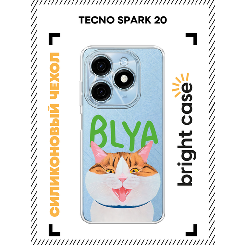 Чехол на Tecno Spark 20 / Текно Спарк 20 с принтом Белый котик с надписью, прозрачный