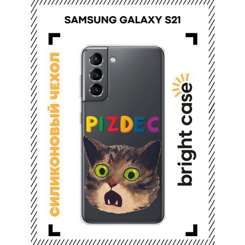 Чехол на Samsung Galaxy S21 / Самсунг S21 с принтом Испуганный котик с надписью, прозрачный