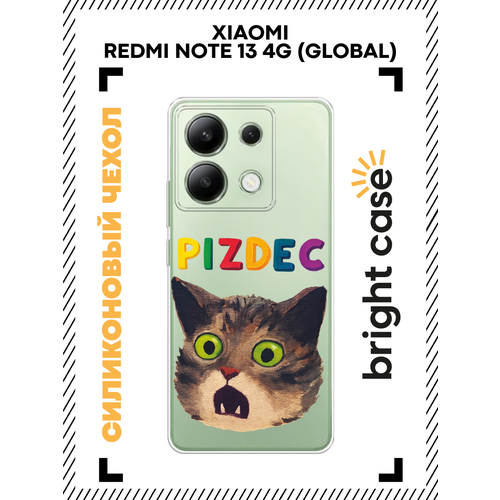 Чехол на Xiaomi Redmi Note 13 4G (Global) / Сяоми Редми Нот 13 4G с принтом Испуганный котик с надписью, прозрачный