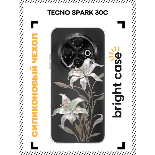 Чехол на Tecno Spark 30C / Текно Спарк 30C с принтом Белые лиллии, прозрачный