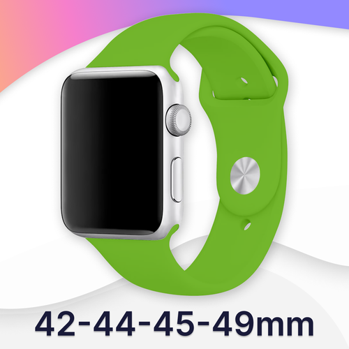 Силиконовый ремешок для Apple Watch 42-44-45-49 mm, Series 1-9, SE, Ultra / Сменный браслет (Sport Band) для смарт часов Эпл Вотч 42-49 мм (Green S)