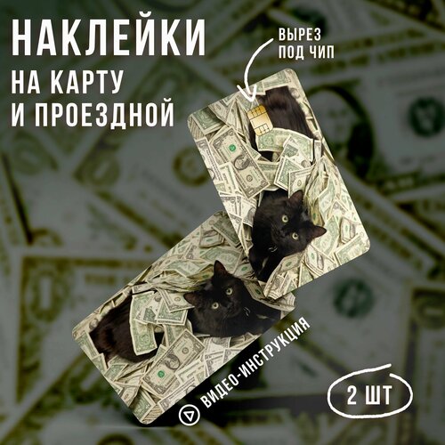 Виниловые наклейки на карту с вырезом под чип мем Кот с деньгами // наклейки с котами