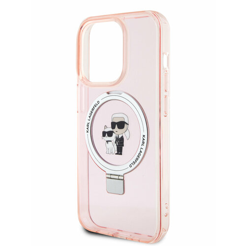 Lagerfeld для iPhone 15 Pro чехол PC/TPU + Ring stand NFT Choupette head Hard Pink (MagSafe)