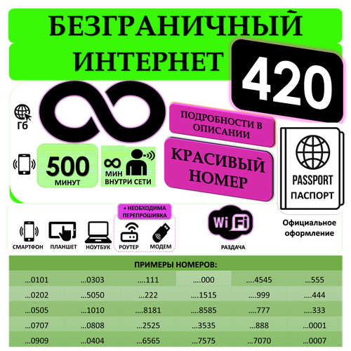 Сим карта Мегафон с раздачей БЕЗЛИМИТНОГО интернета и КРАСИВЫМ номером с оформлением на ВАС!